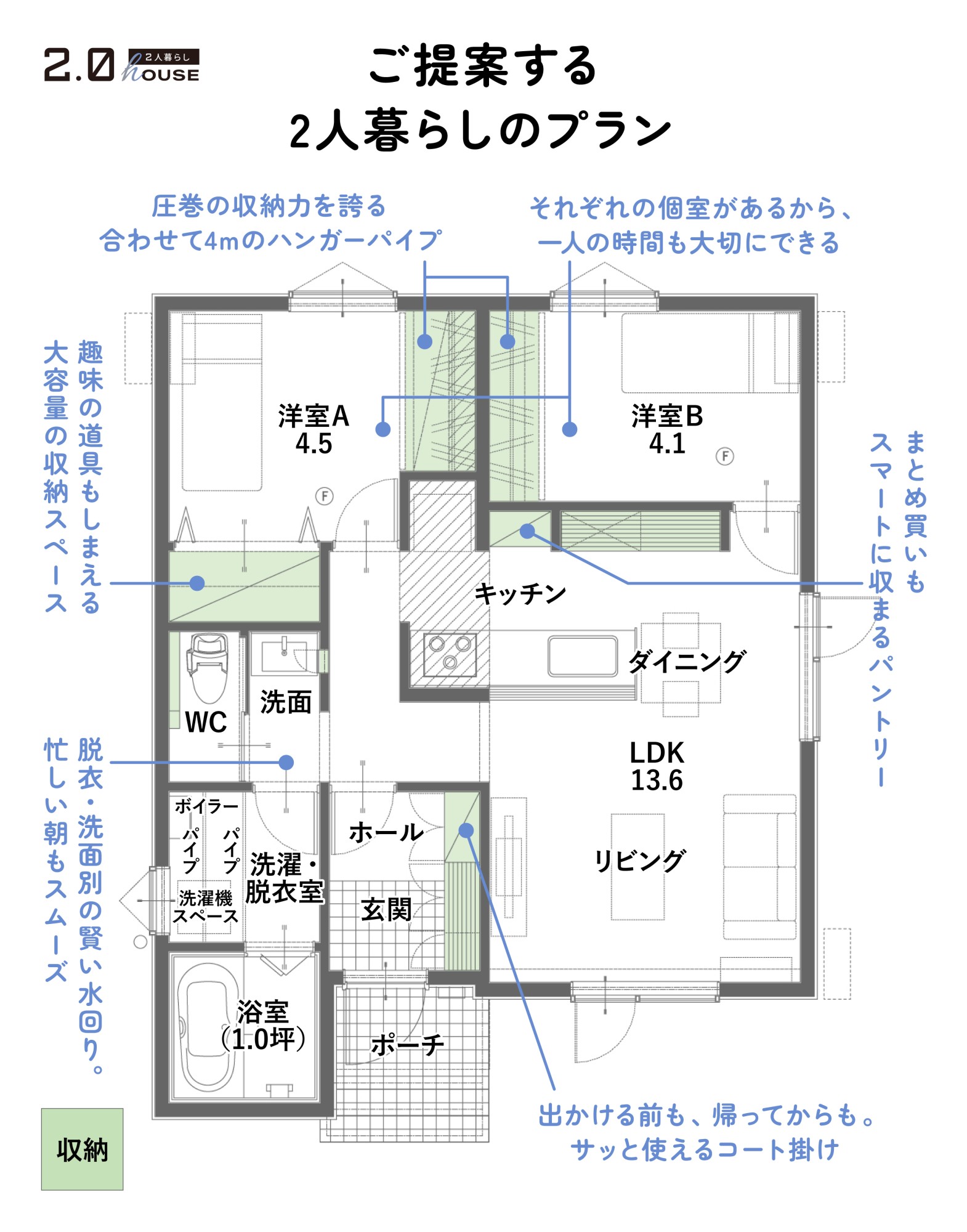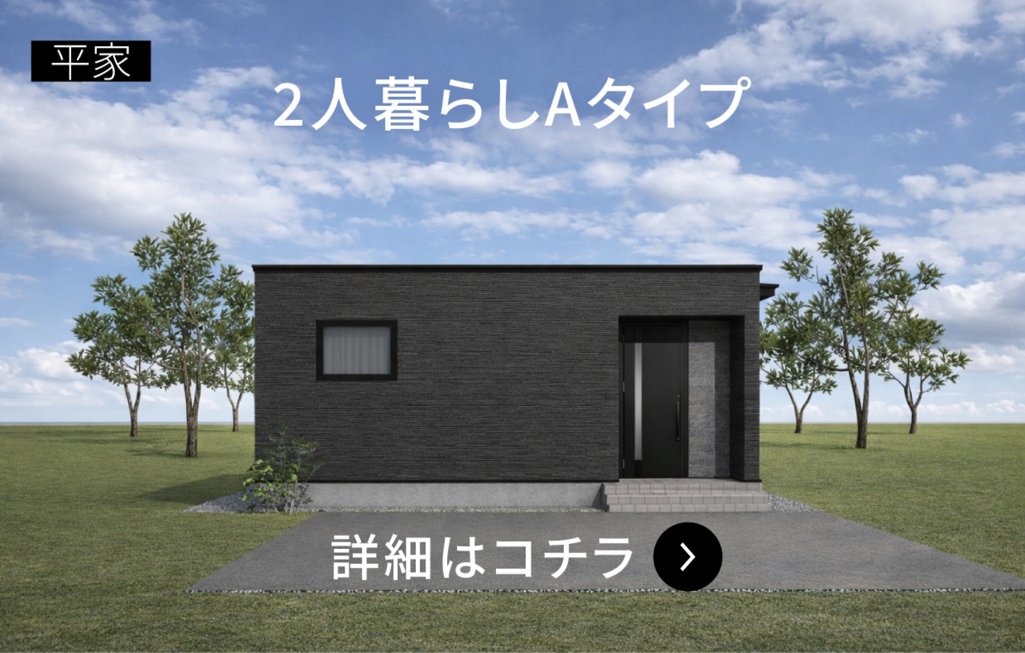 1人暮らし 2人暮らし 3人暮らし 4人暮らし 5人暮らし以上 商品プラン コンセプト 2人暮らしのライフスタイル 平屋 2.0 HOUSE 〜2人暮らしタイプ 2026. 02. 28. 平屋 2人暮らしCタイプ 18坪本体価格1,892万円(税込) 月々47,394円 2026. 02. 28. 平屋 2人暮らしAタイプ 19.24坪本体価格1,936万円(税込) 月々48,496円 2025. 12. 05. 平屋 2人暮らしDタイプ 19.25坪本体価格1,936万円(税込) 月々48,496円 随時見学予約受付中 【予約受付中】平屋最新モデルハウス【オープン】