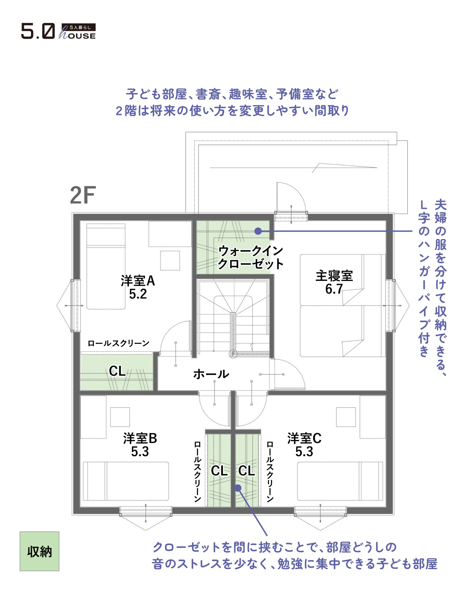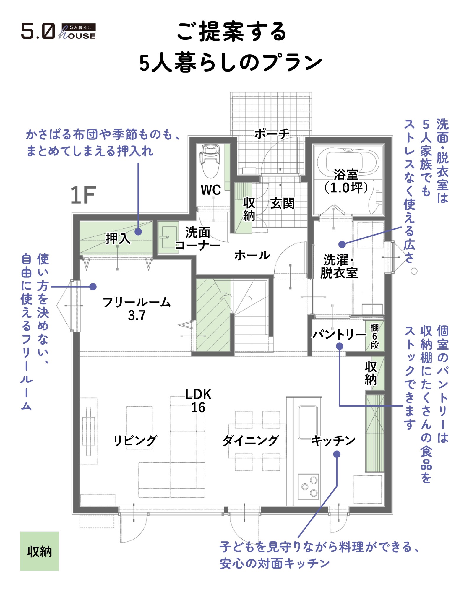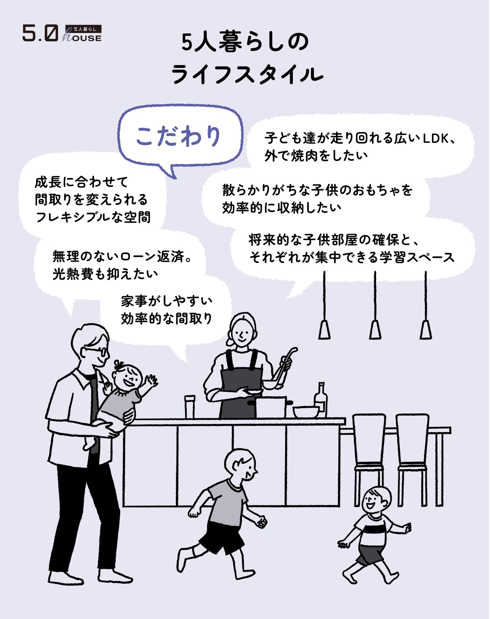 1人暮らし 2人暮らし 3人暮らし 4人暮らし 5人暮らし以上 商品プラン コンセプト 5人暮らしのライフスタイル 2階建て 5.0 HOUSE 〜5人暮らしタイプ 2025. 12. 05. 2階建て 5人暮らしAタイプ 32.96坪本体価格2,420万円(税込) 月々60,620円 随時見学予約受付中 【予約受付中】平屋最新モデルハウス【オープン】