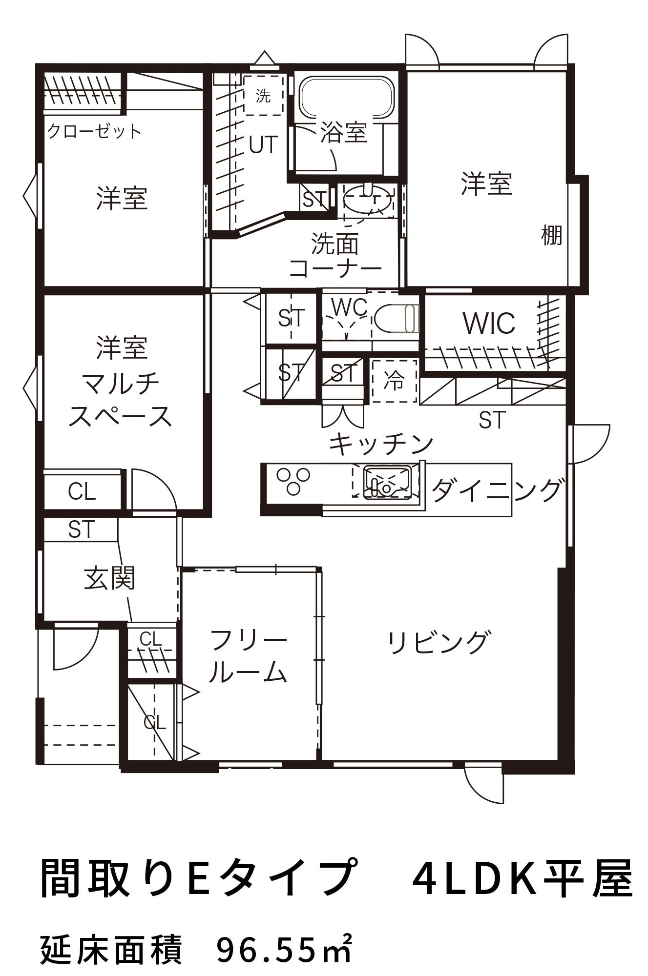 リビングとつながるフリールームで、フロアを広く使える4LDKです。