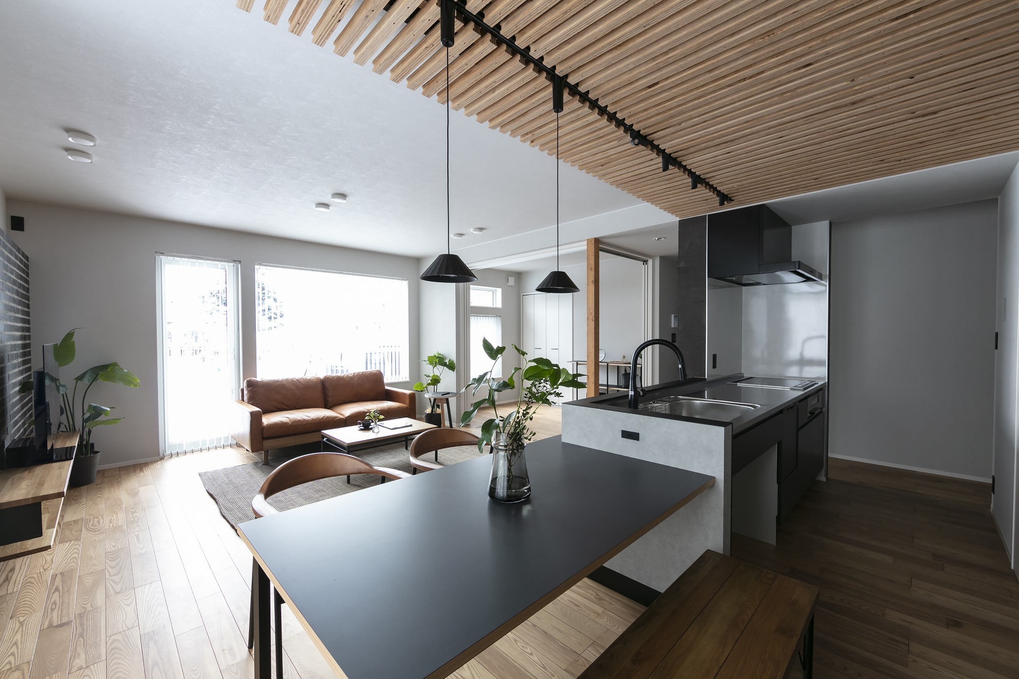 ブラック×ウッドが映える、上質でモダンな平屋。